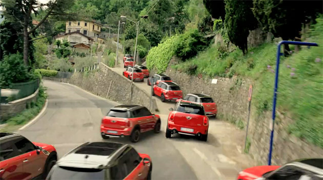 Mini is continuing its advertising onslaught for the new Countryman, and in its latest spot, the company visualizes every potential path for the Countryman to run amok in the Italian countryside. The original car eventually multiplies into a fleet of over one hundred CG interpretations, all hopping curbs and harassing pedestrians in what we can only imagine is what the world would look like if a Mini exec ruled the globe. Eventually, the high-riding Countryman flings itself onto a ferry to escape into the sunset.