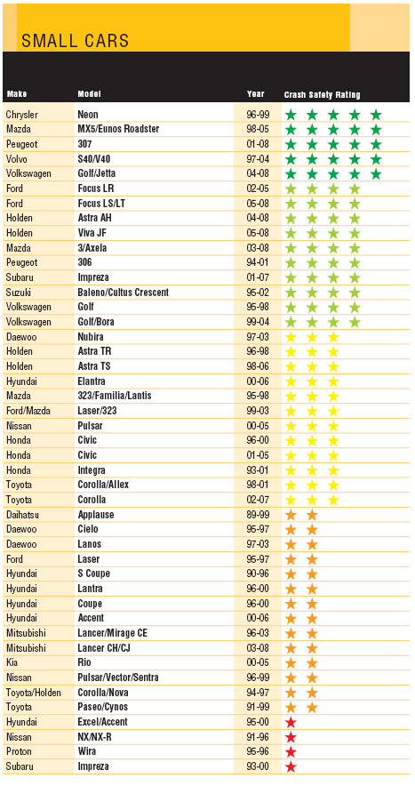 The ratings work in much the same way as ANCAP; five stars are awarded to the safest cars while anything given one star means you’re probably best off taking the bus. The comprehensive list used over three million crashes which occurred in Australia and New Zealand during 1996 to 2008 as the foundation of the research.